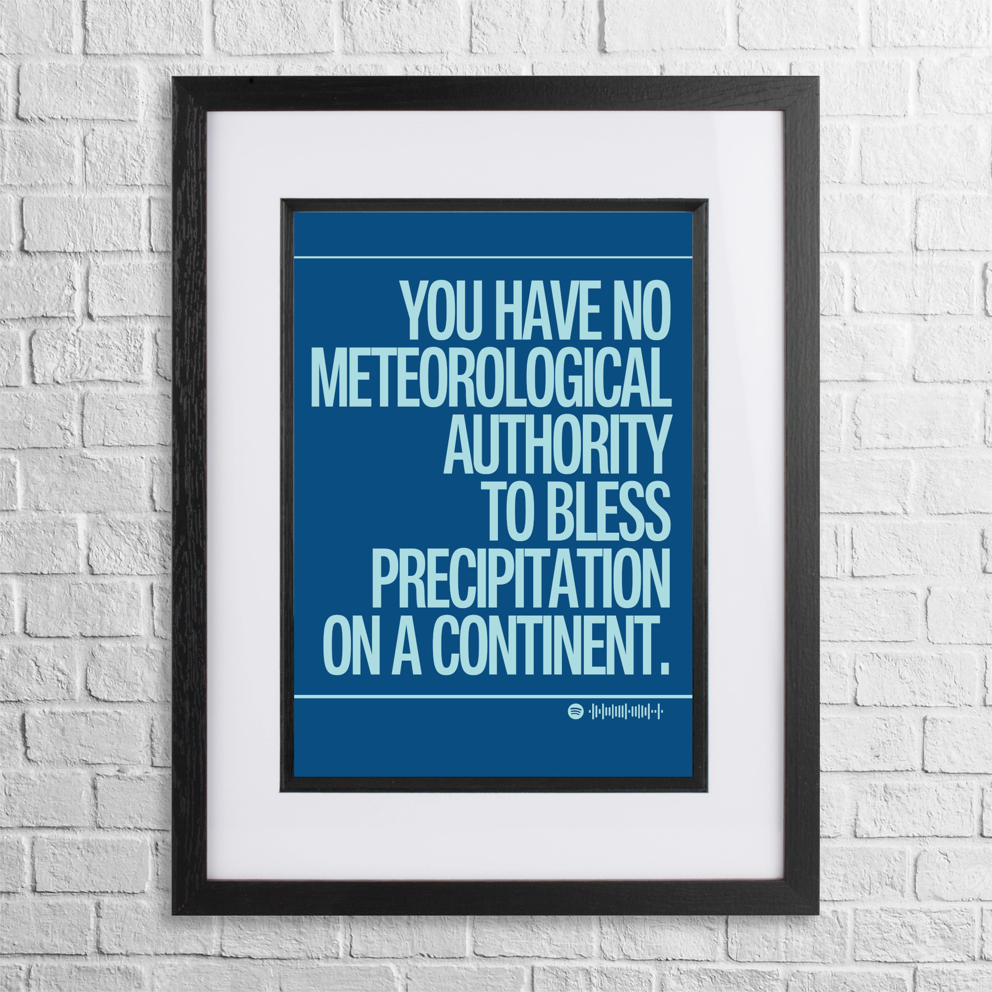Text: “You have no meteorological authority to bless precipitation on a continent.”
