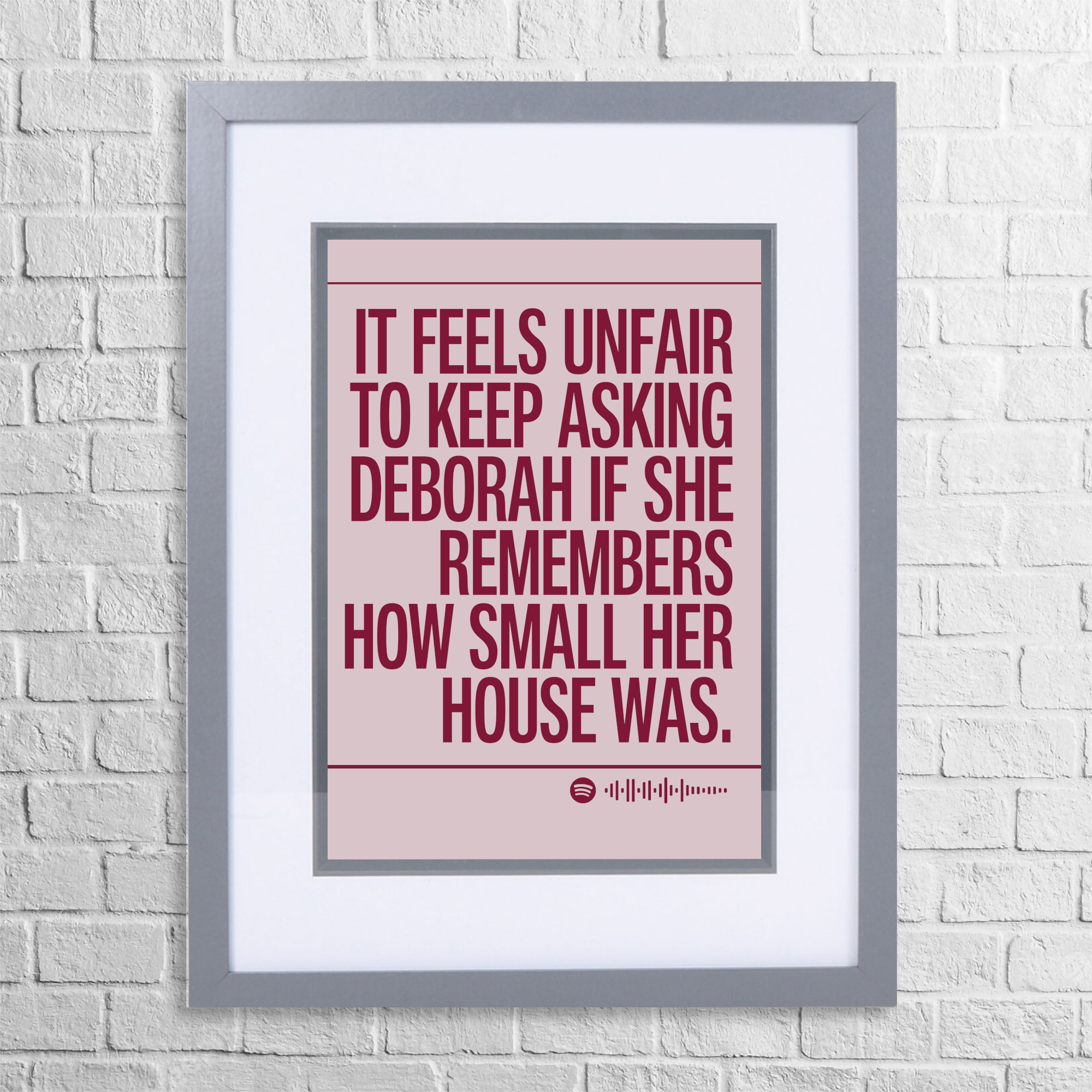 This piece is part of an ongoing collection of minimalist lyric reinterpretations — iconic lines from decades of pop and rock, reframed with calm, precise, slightly pedantic humour. Whether displayed at home or in your workspace, this witty print is a guaranteed conversation starter.