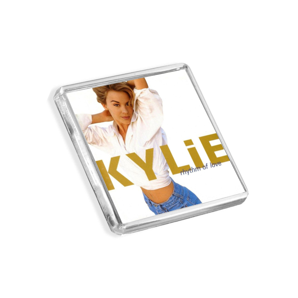 Kylie Minogue – Rhythm Of Love album cover-inspired fridge magnet. In stock and ready to order! We’ve got hundreds of music album designs on our store, however if your favourite isn’t listed then fear not! Drop us a line at hello@magnetplanet.co.uk and we can make one for you. If you like this Kylie Minogue – Rhythm Of Love album cover fridge magnet, we have a bundle set available here.